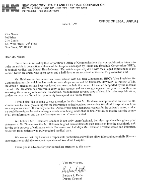 | Kevin Heldman, a former editor at City Limits, was a 1996 and 1997 finalist for the Livingston Award in international reporting and the winner of a 1998 National Mental Health Association award for excellence in mental health reporting. |