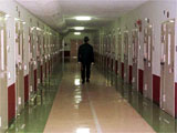 A prison guard walks the hallway to patrol the cells at the Fuchu prison in Tokyo.